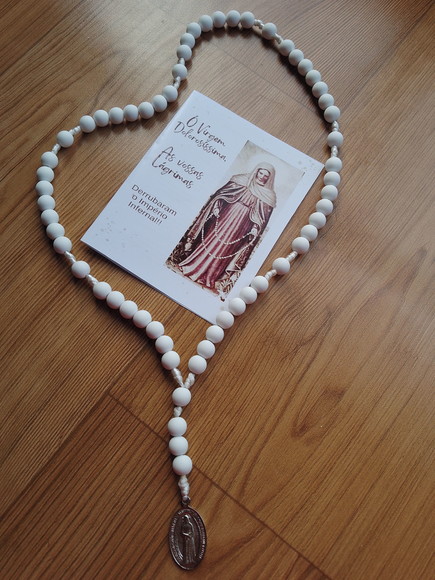 -Fio de seda para terços de cores diversas Para aumentar a durabilidade do seu terço, evite coloca-lo com objetos cortantes, não molhe e não deixe exposto ao sol. REZEM O ROSÁRIO TODOS OS DIAS (NOSSA SENHORA)