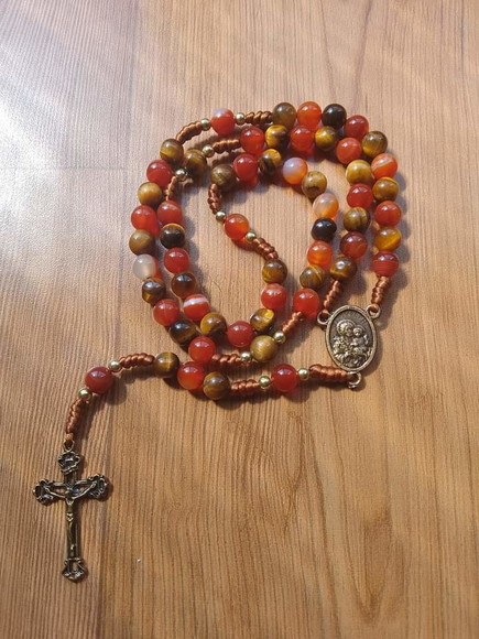 Terço confeccionado com pedras naturais olho de tigre e ágatha